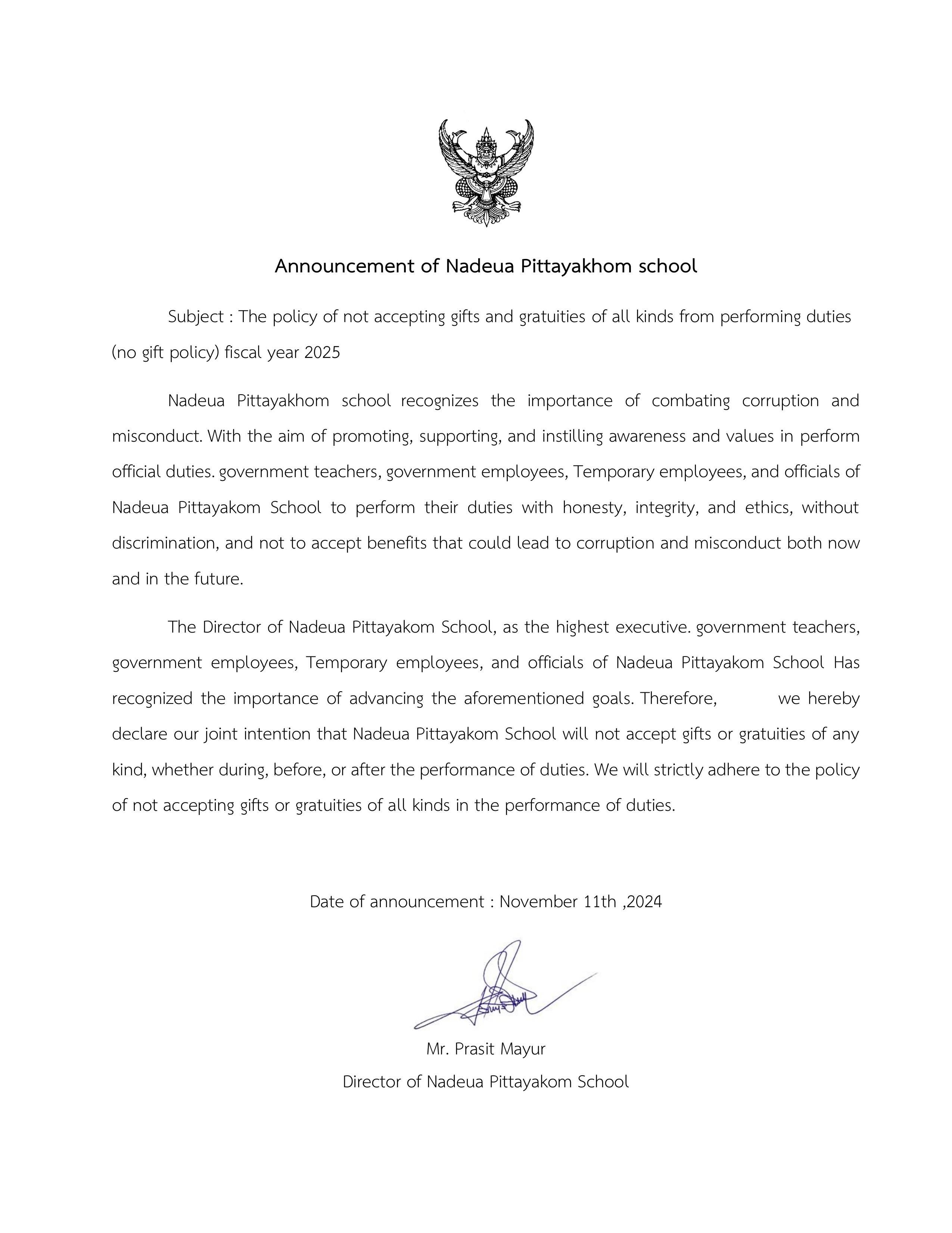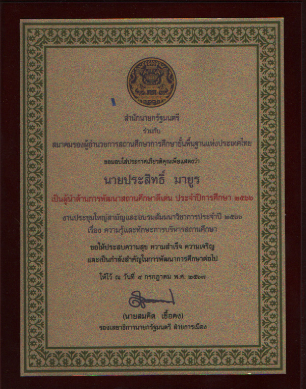 1. นายประสิทธิ์ มายูร เป็นผู้นำด้านการบริหารสถานศึกษาดีเด่น ประจำปีการศึกษา 2566