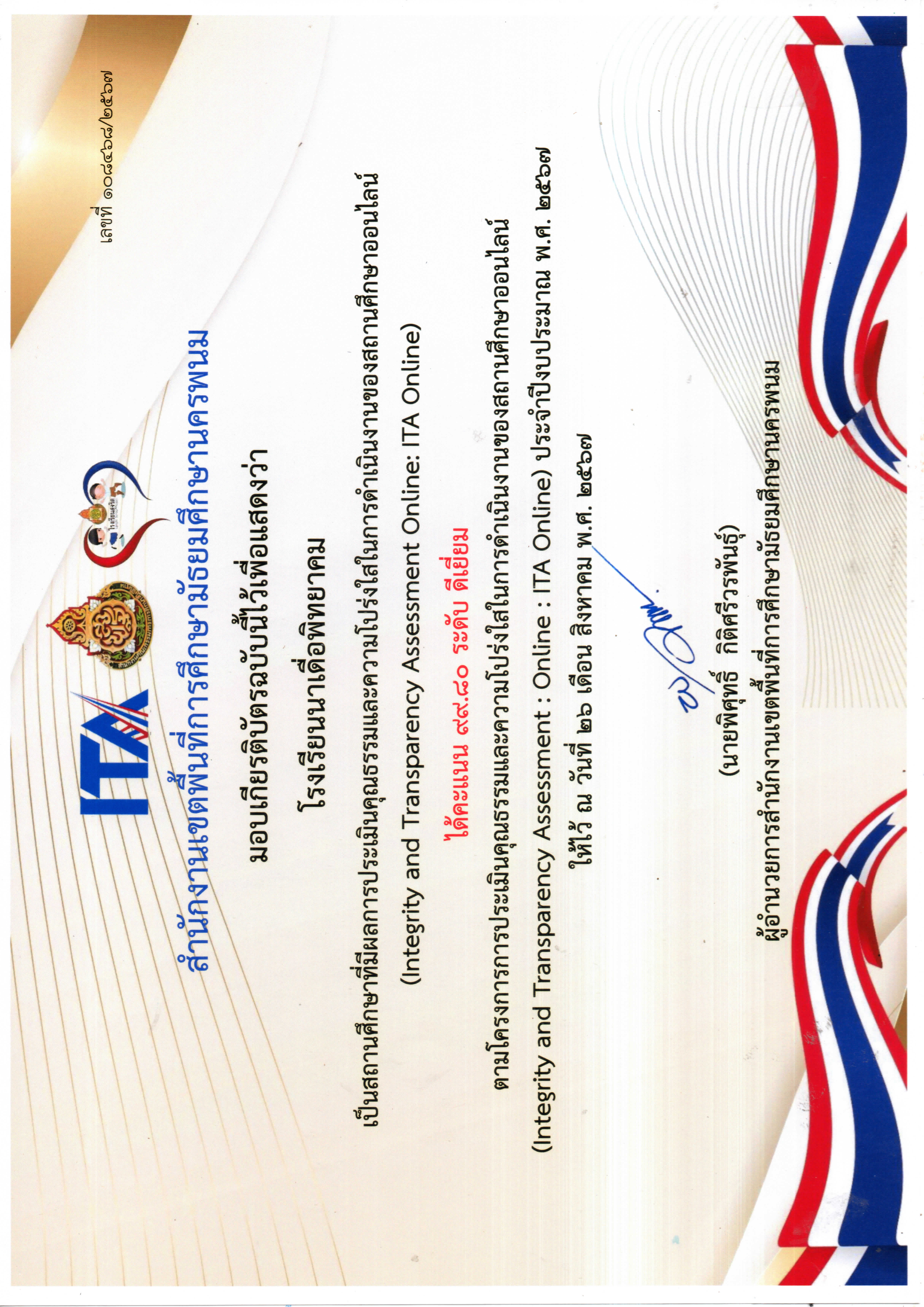 2. ผลการประเมิน ITA Online สถานศึกษา ปีงบประมาณ 2567 ระดับ ดีเยี่ยม