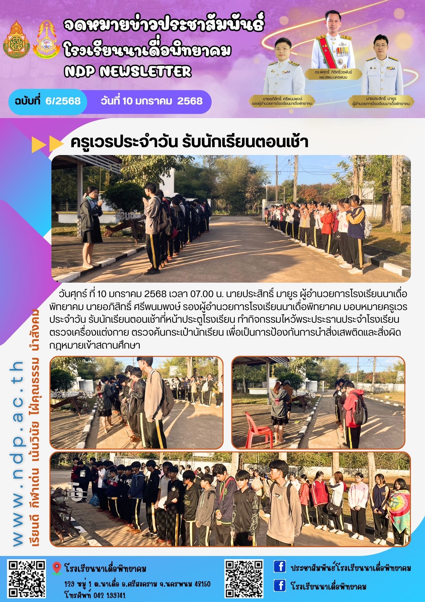 ครูเวรประจำวันต้อนรับนักเรียนตอนเช้า