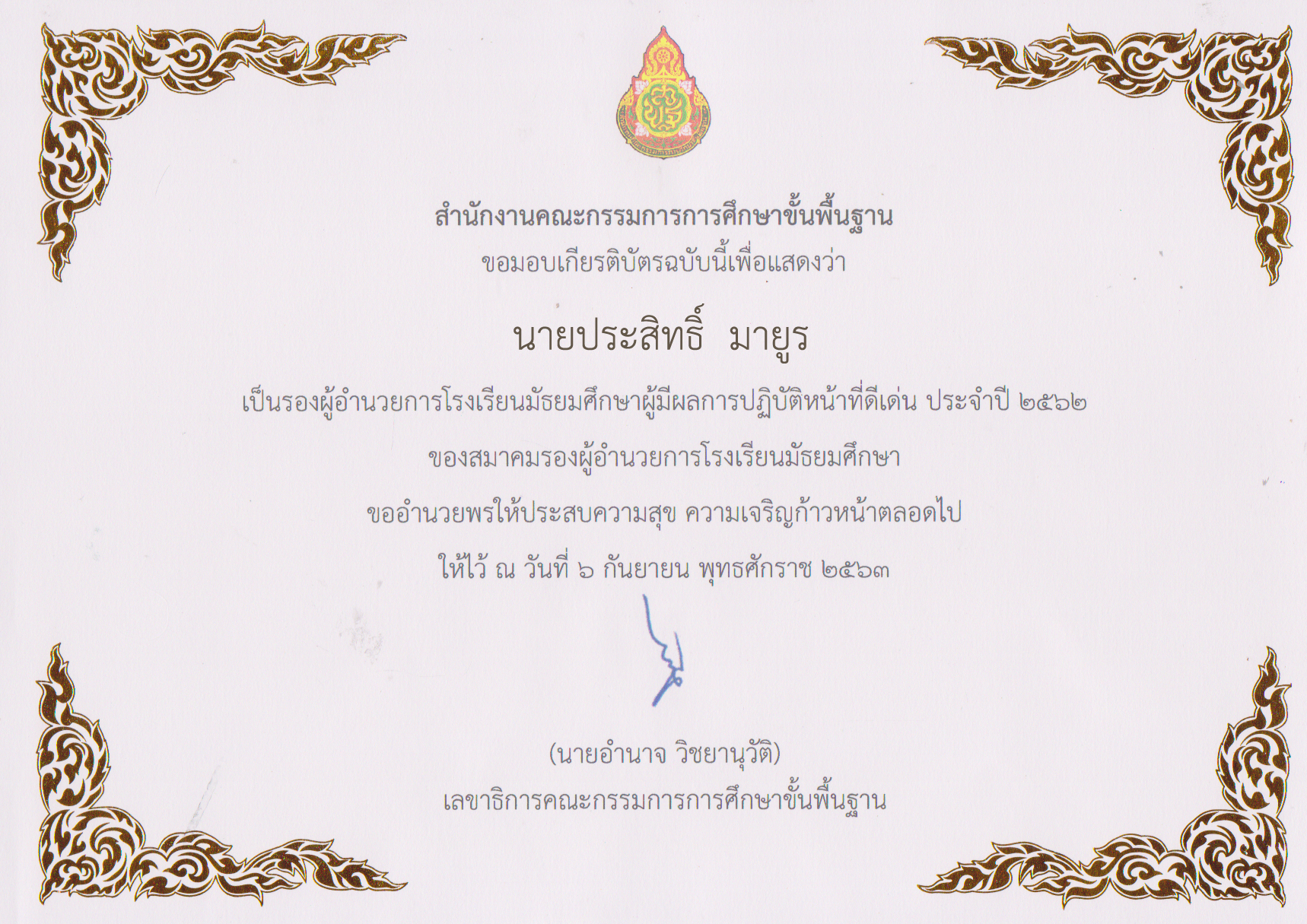 นายประสิทธิ์ มายูร ได้รับรางวัลรองผู้อำนวยการโรงเรียนมัธยมผู้ที่ปฏิบัติหน้าที่ดีเด่น ประจำปี 2564 สมาคมรองผู้อำนวยการโรงเรียนมัธยมศึกษาแห่งประเทศไทย