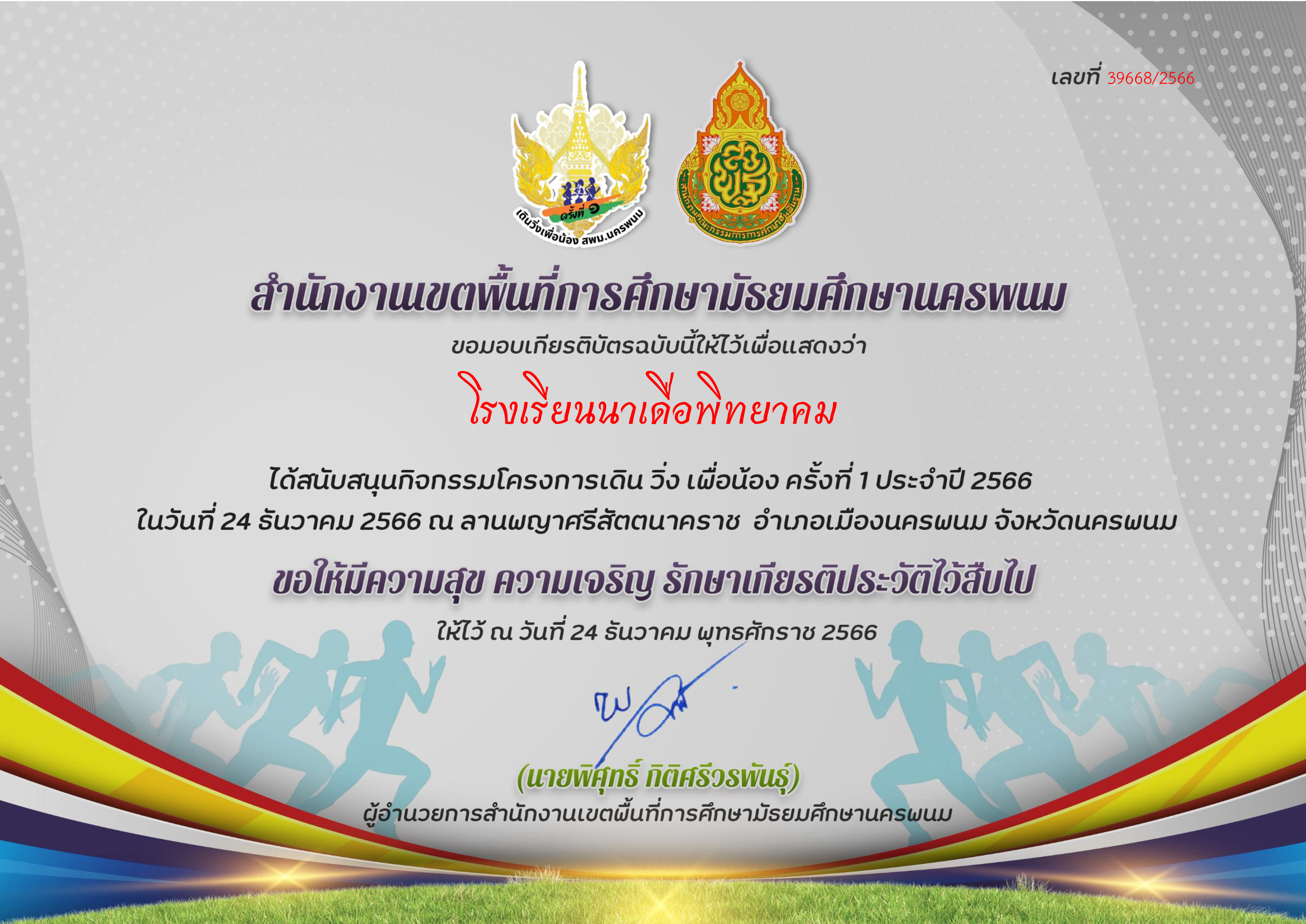นาเดื่อพิทยาคม สพม.นครพนม : เรียนดี กีฬาเด่น เน้นวินัย ใฝ่คุณธรรม นำสังคม